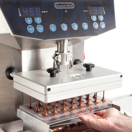 Technické parametre: Zaručuje hygienické spracovanie Šetrí čas Štandardná verzia je vybavená dvoma dávkovacími doskami (3 x 7 a 3 x 8) Na vibračnom stole je riadiaci systém foriem, vyhrie